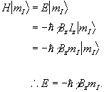 and is known as the Zeeman Hamiltonian. Now using the Schrödinger equation, the energy of the eigenstate is found.