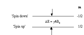 This is called the Zeeman splitting, and is shown as an energy level diagram in Figure 2.1. These two states are given a variety of labels, but most commonly referred to as 'spin up', and 'spin down', with the spin-down state having a higher energy than the spin-up state. Transitions between the two states can be induced by absorption or emission of a photon of frequency n 0, such that