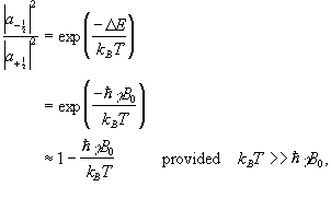 The ratio of the populations of the two energy states from Boltzman statistics is