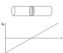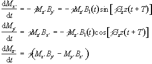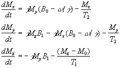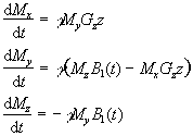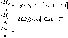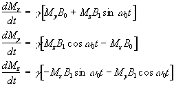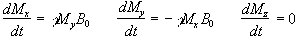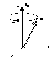 the characteristic frequency, w, being the Larmor frequency. The magnetic field, labelled B0, is still assumed to be applied along the z axis, and is now subscripted with a '0' to distinguish it from the applied radio frequency field which will be introduced later.