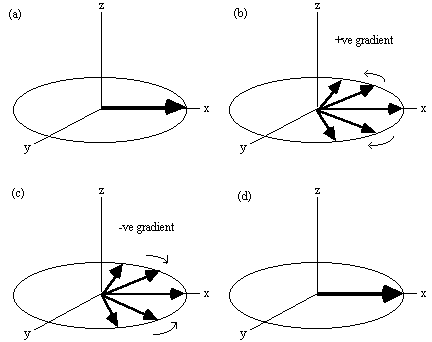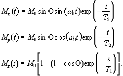 At this point it is appropriate to introduce a new frame of reference for viewing the evolution of the magnetisation vector, the rotating frame, which rotates about the z-axis at frequency w 0. If in the rotating frame an axis system (x',y',z) is defined then equation 2.19 can be written