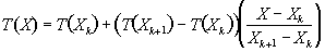 The values of the intermediate points are obtained by linear interpolation, so that the intensity at the location X in the new grid is given by